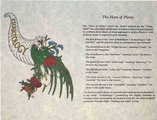 This picture illustrates the trademark of Eschatology, the Horn of Plenty, and describes the meaning of each part of the Horn.